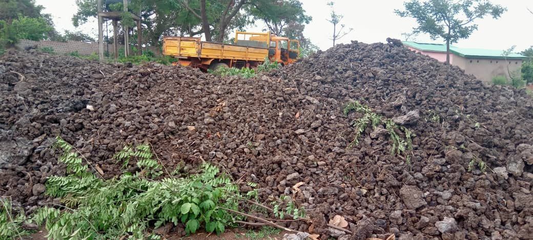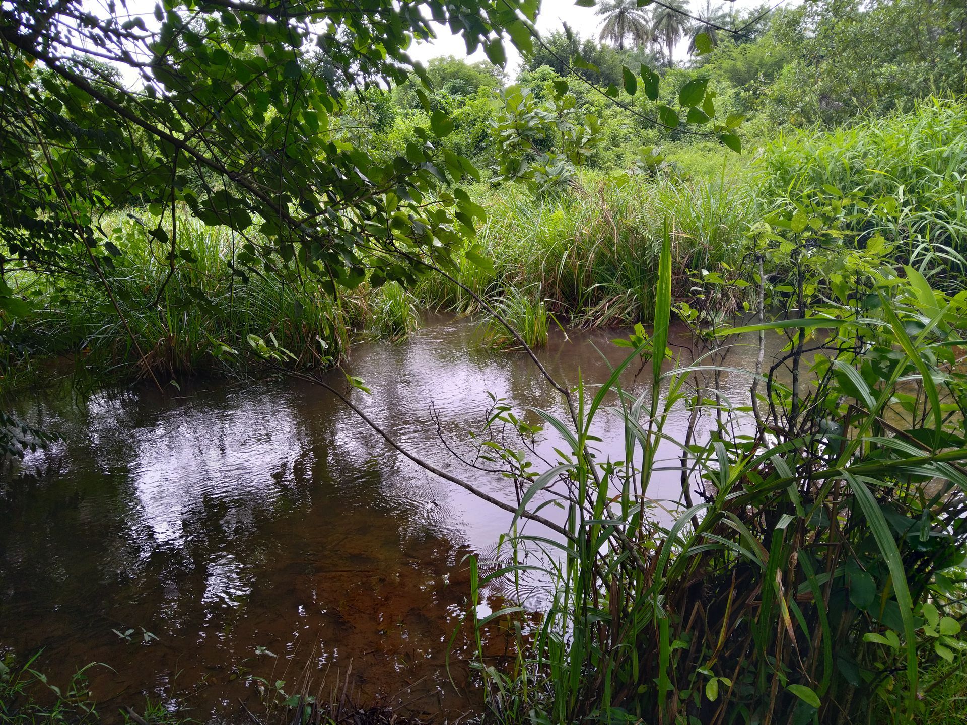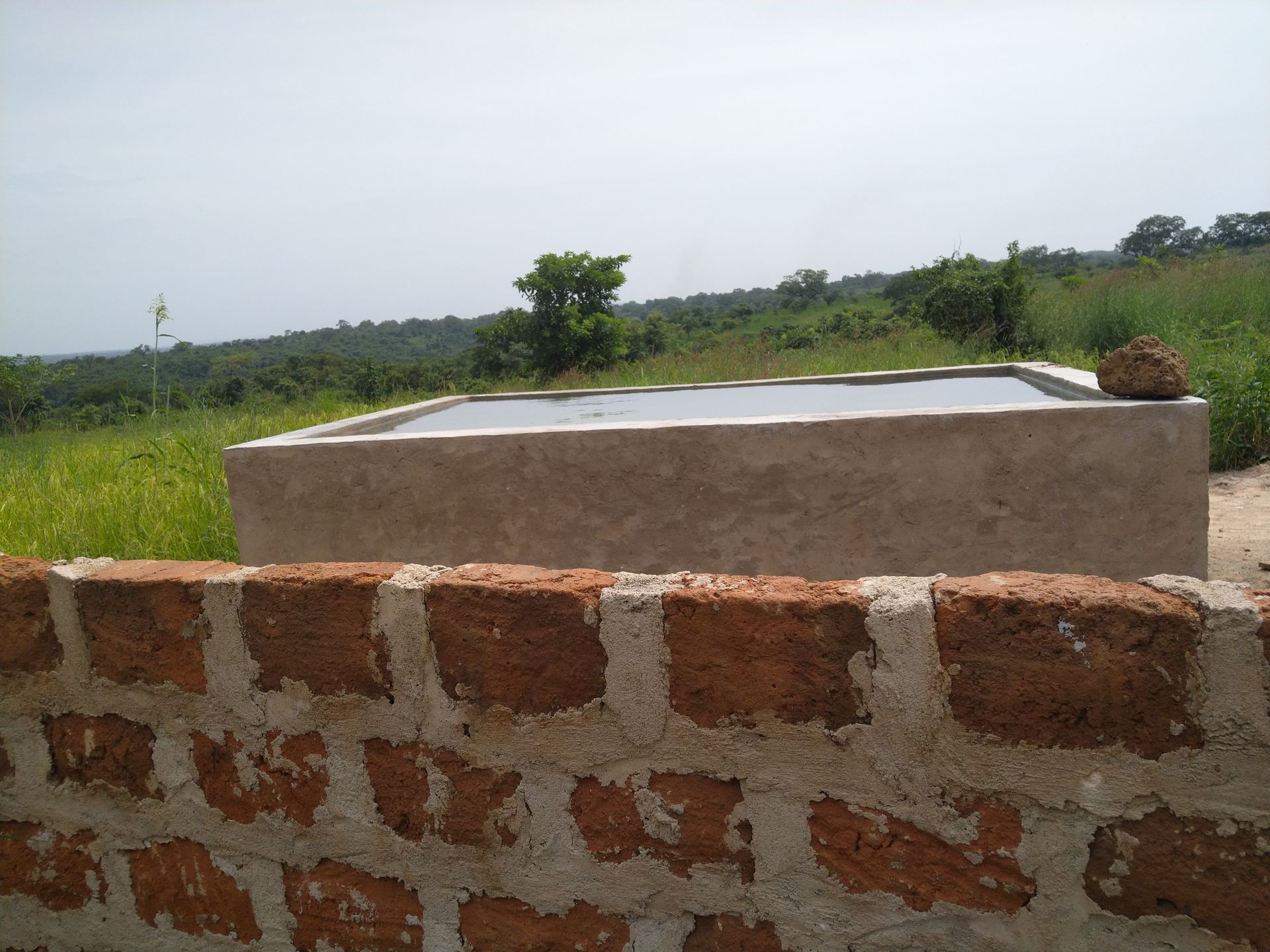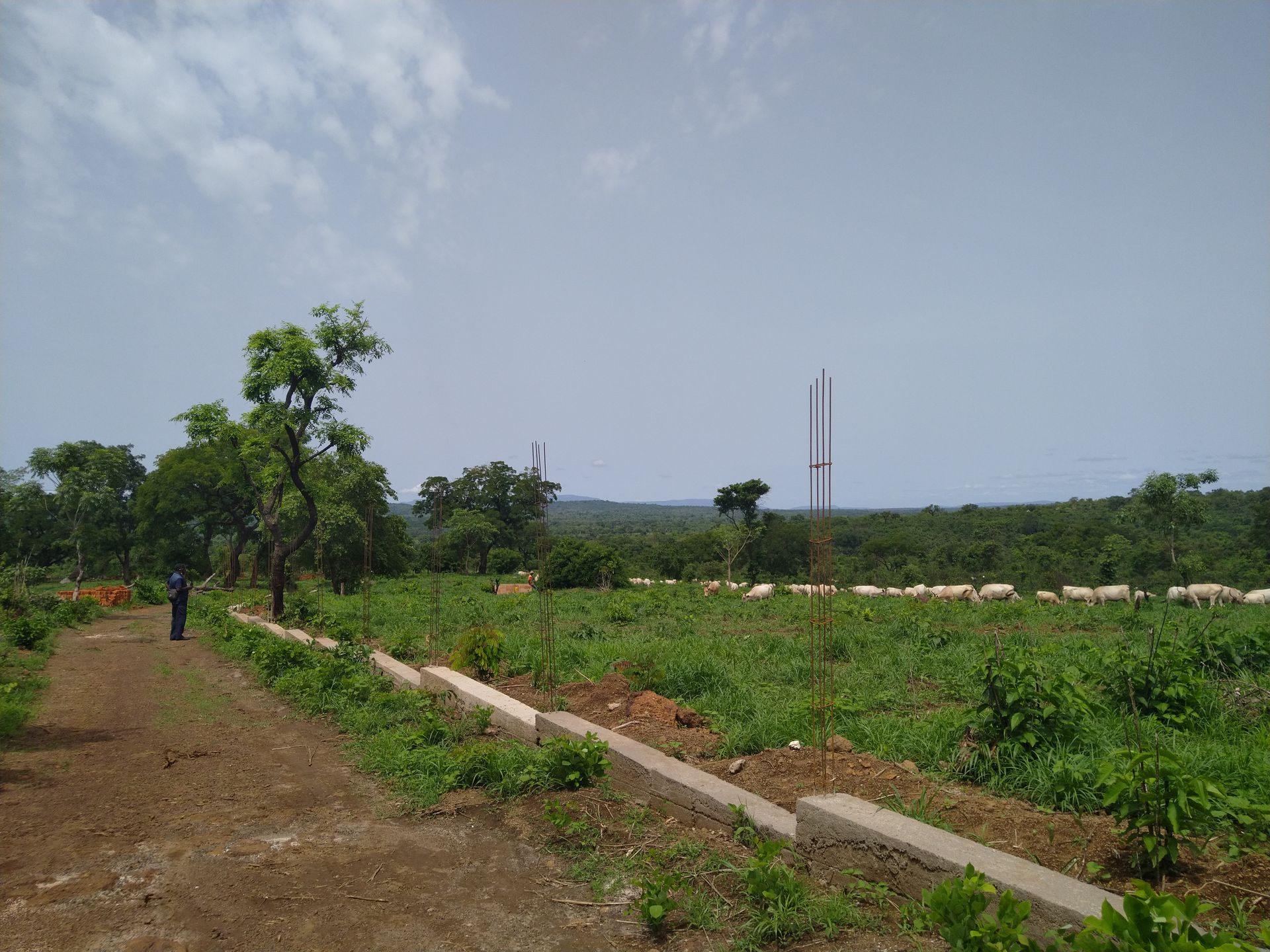 Das Grün der Natur, die ersten Obstbäume, das Wasser in unserem kleinen Tal, zwei Tiefbrunnen mit Solarpumpen um Trinkwasser und Wasser für die Bewässerung der oberen Felder zu erhalten, die Bauaktivitäten - die Unterkünfte der Mitarbeiter noch im Bau und vor allem die Mauer als Schutz gegen "Räuber": die Rinder, Schafe und Ziegen der Nachbarn aber auch das Buschfeuer, und das, was nach dem Buschfeuer noch blieb. Aber die ersten Kulturen, es sind Auberginen, geben Hoffnung. Und das Bewässerungssystem ist im Aufbau befindlich.