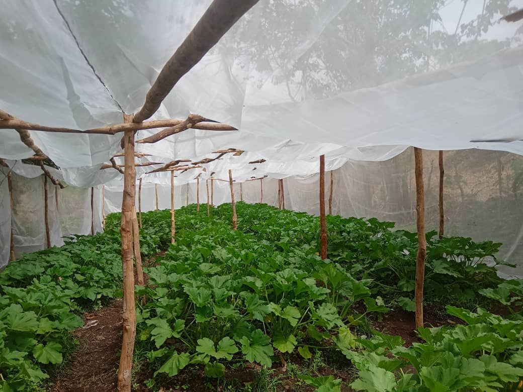 Für die Zucchini, da waren die weißen Insektenschutznetze, die wir zum Schutz gegen die Fliegen angebracht hatten, zu heiß, da sie im Tal gepflanzt waren und damit vollständig die nötige Belüftung fehlte - das war uns eine Lehre. Jetzt ist es an uns, für die Pflanzen genug Belüftung sicherzustellen, damit sie nicht der drückenden Hitze ausgesetzt sind. Das heißt, die rechte Wahl des Ortes und des Monats, die es erlauben in Kindia auch Zucchini anzubauen.
